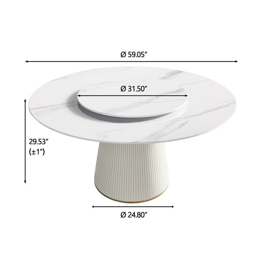 59.05" Modern Artificial Stone Round Metal Dining Table, Can Accommodate 6 People Artificial Stone Turntable - White / Black