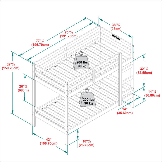 Rohan - Twin / Twin Bunk Bed - Pink / White