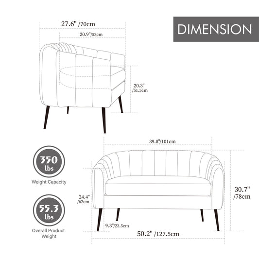 Loveseat Sofa, Comfortable Deep Seat Sofa Bed, Modern Small Corduroy Couch For Living Room Bedroom,Reversible Cushion With Pillows,No Assembly Required,Dark Gray