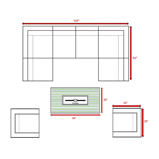 9 Piece Outdoor Sectional Set With Fire Pit Table And Cushions - Beige