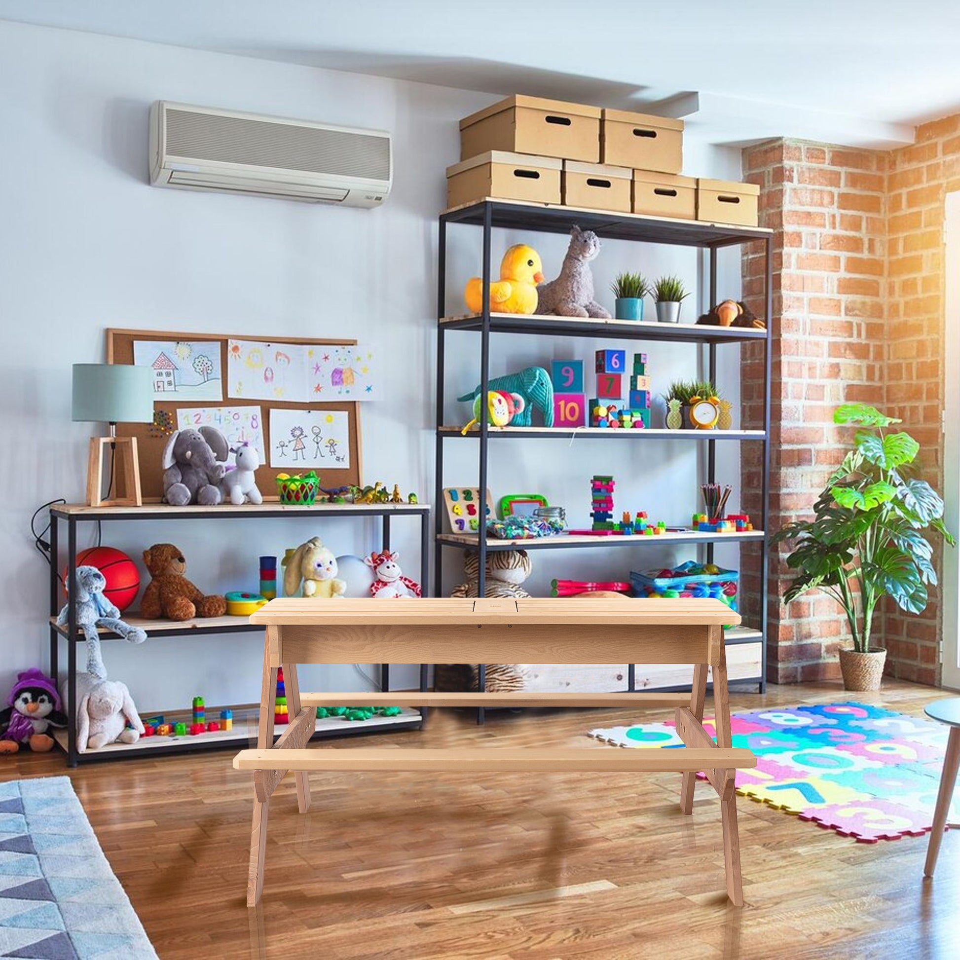- 3-in-1 Design: Multifunctional table can be used as a picnic table, activity table, sand table, or water table with sink toys.