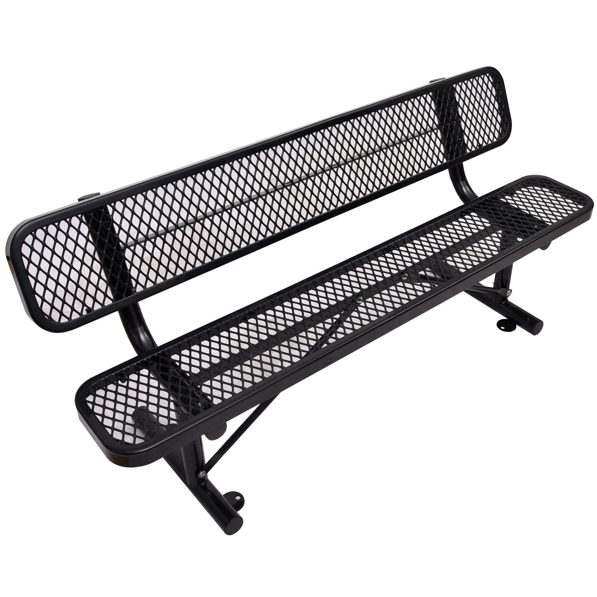 6' Outdoor Steel Bench With Backrest - Black