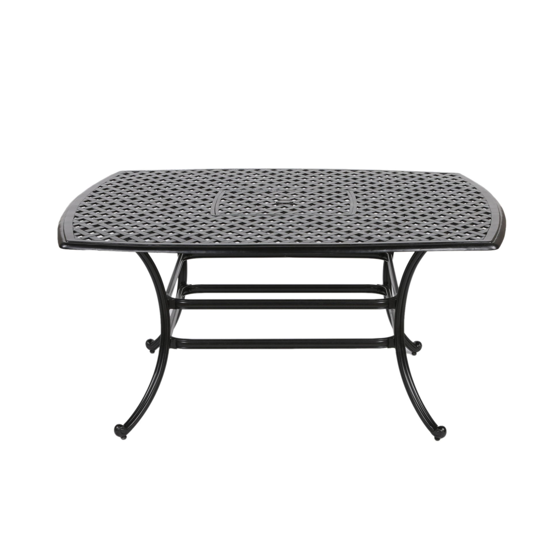 - CLASSIC LATTICE DESIGN: The Castle Rock Collection features an attractive lattice design tabletop and decorative curved legs, this modern outdoor dining table adds a touch of sophistication to any outdoor setting.