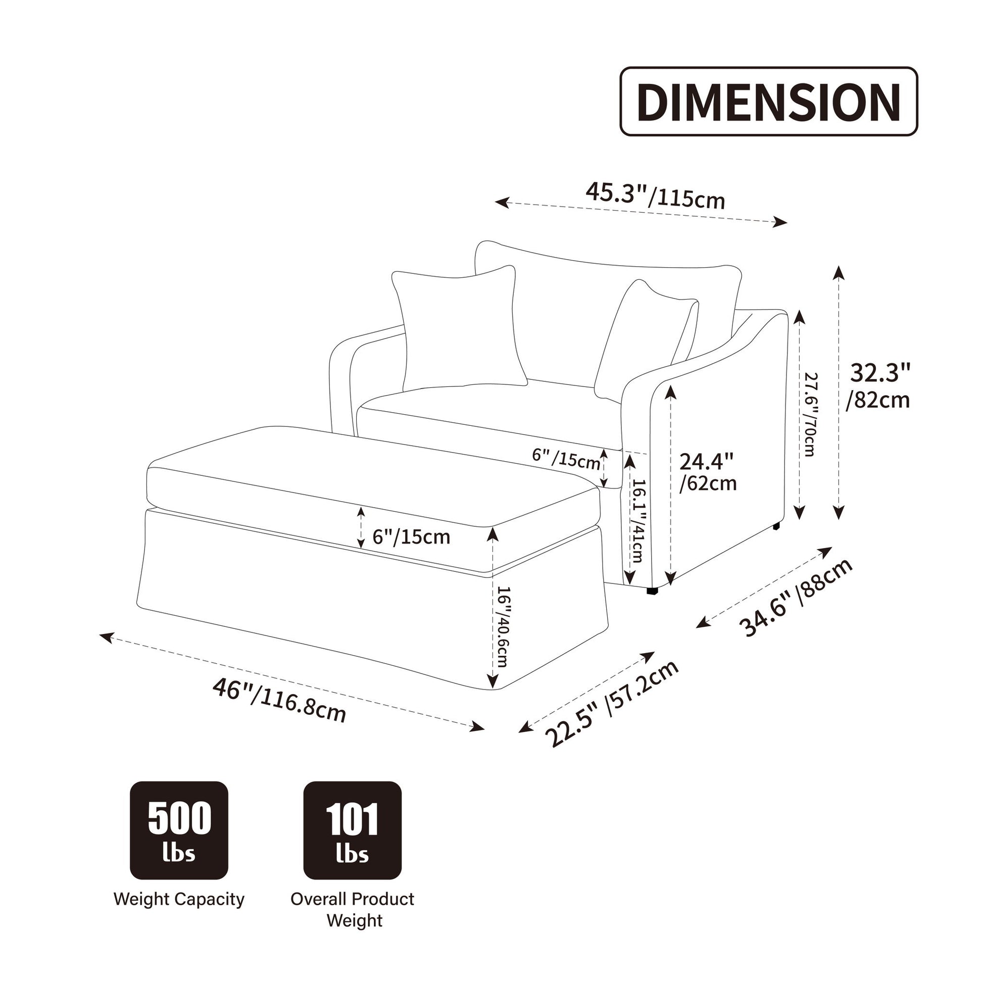 Accent Chair Wide With 2 Bolster Pillows, And Matching Ottoman