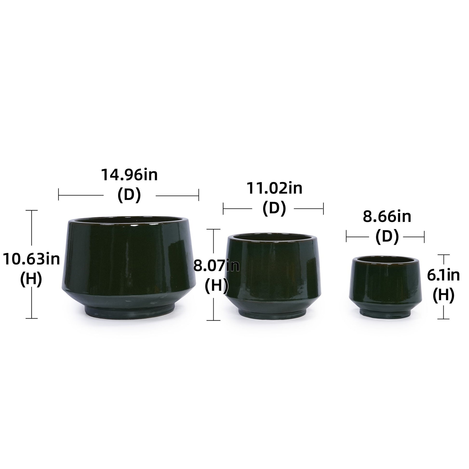 Ceramic Flowerpot, Planter For Patio, Garden, Windowsill (Set of 3) - Antique Green
