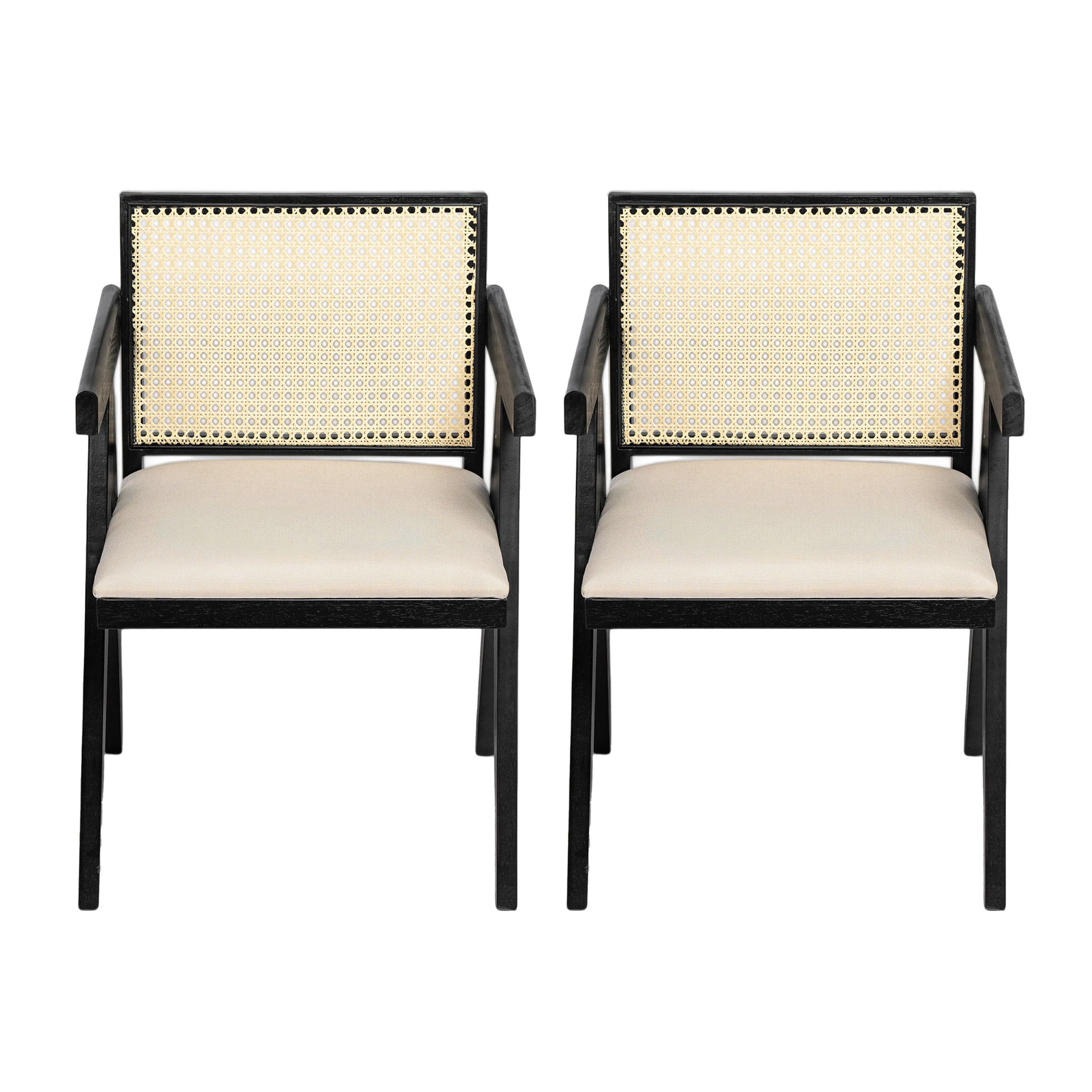 Chandigarh Farmhouse Style Cane Upholstered Dining Chairs (Set of 2)