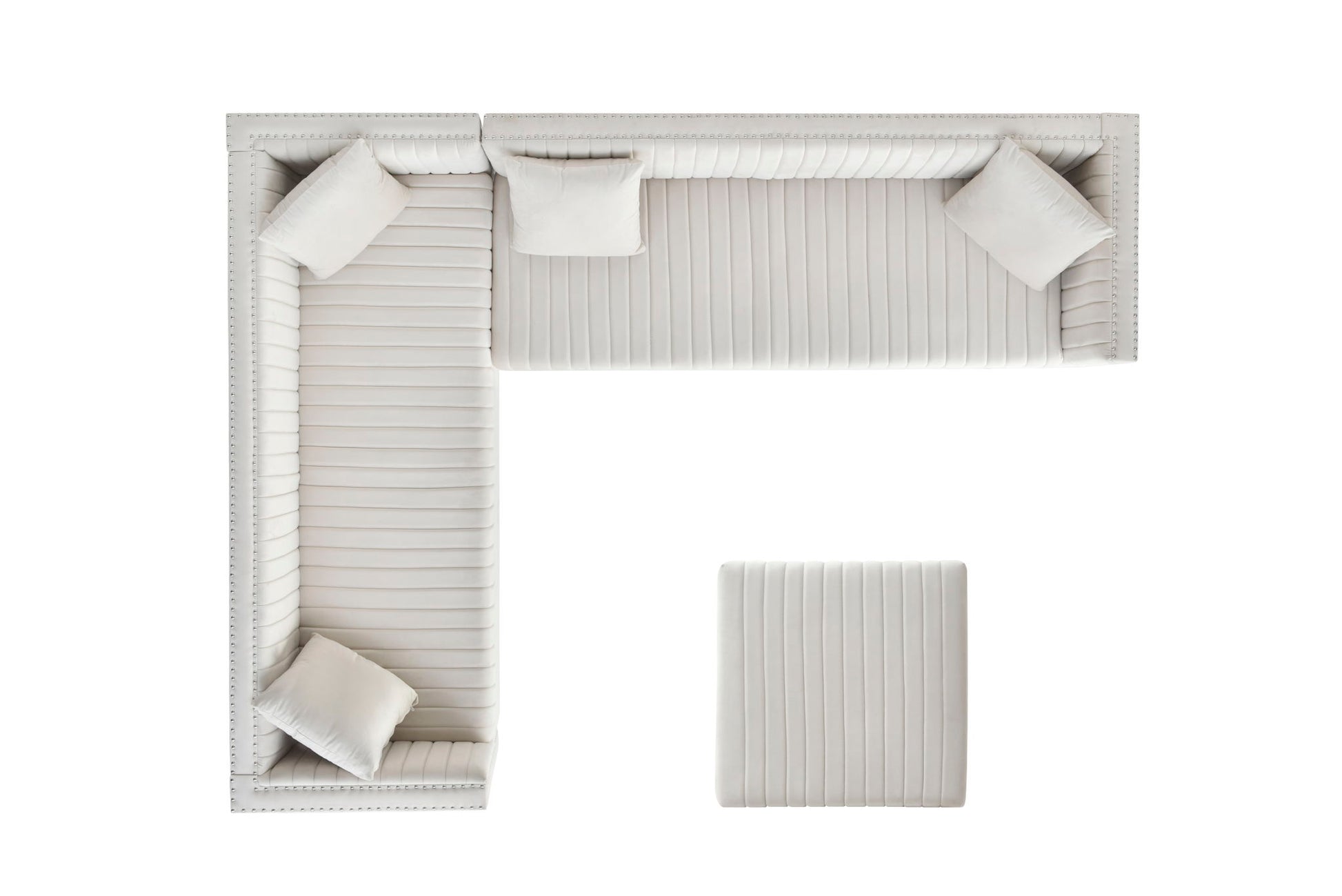 Contemporary Vertical Channel Tufted Velvet Sectional Sofa For Living Room Apartment With Ottoman And 4 Pillows - Beige