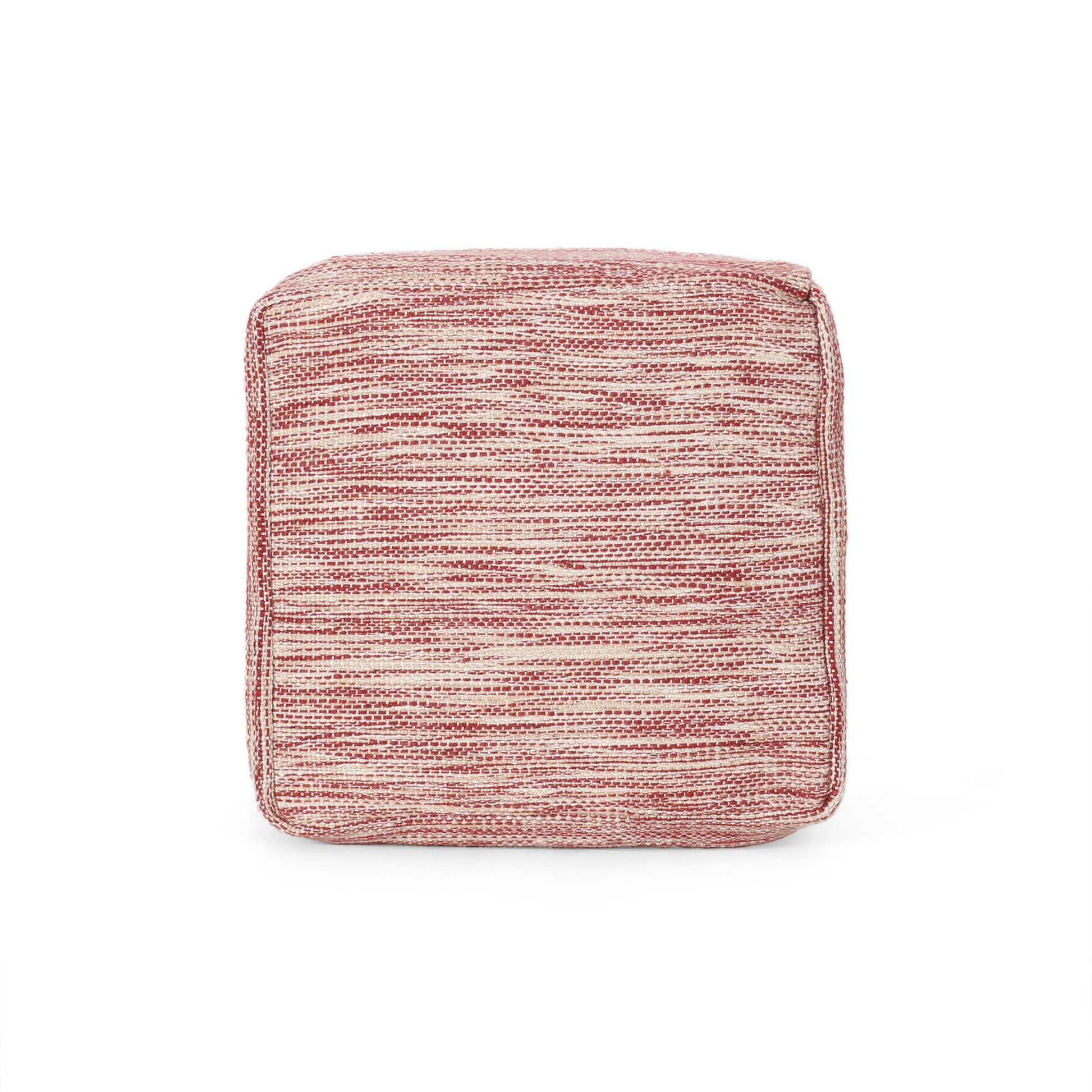 Enigma - Yarn And Cotton Square Pouf Ottoman With Polystyrene Beads - Red / White