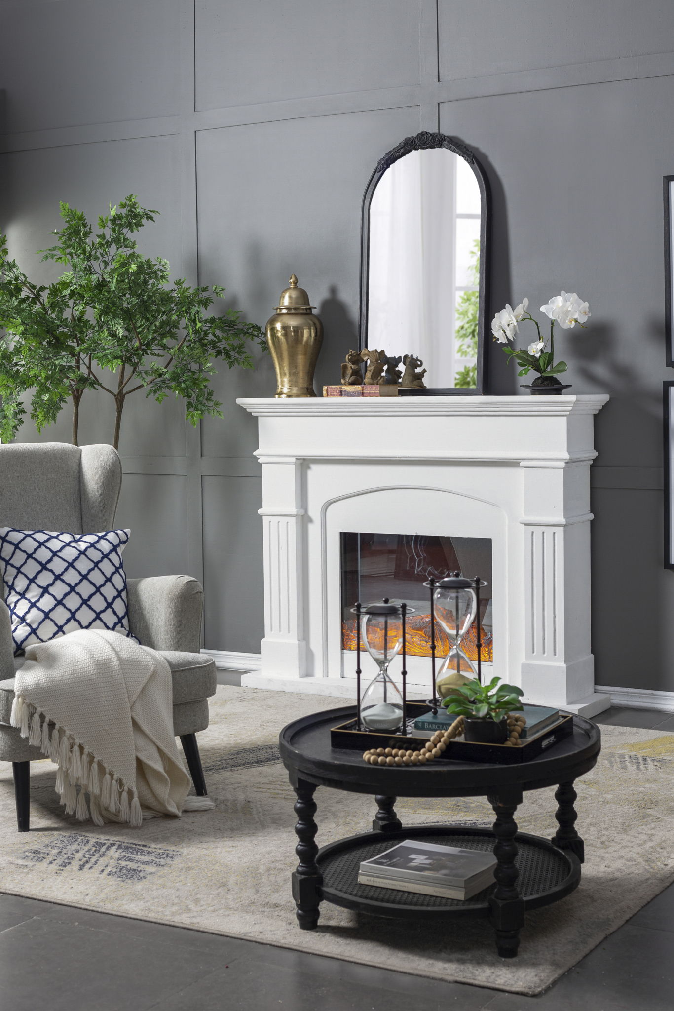 Hand Carved Rose Antique Mirror Frame, Large Arch Mirror Wall Decor For Living Room, Bathroom, Entryway - Black