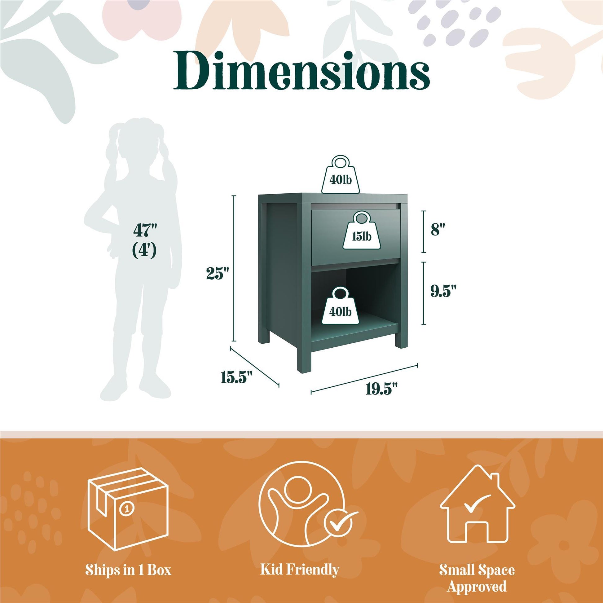 - Ample Storage: Includes one drawer and one open cubby for organizing bedtime essentials and cherished items