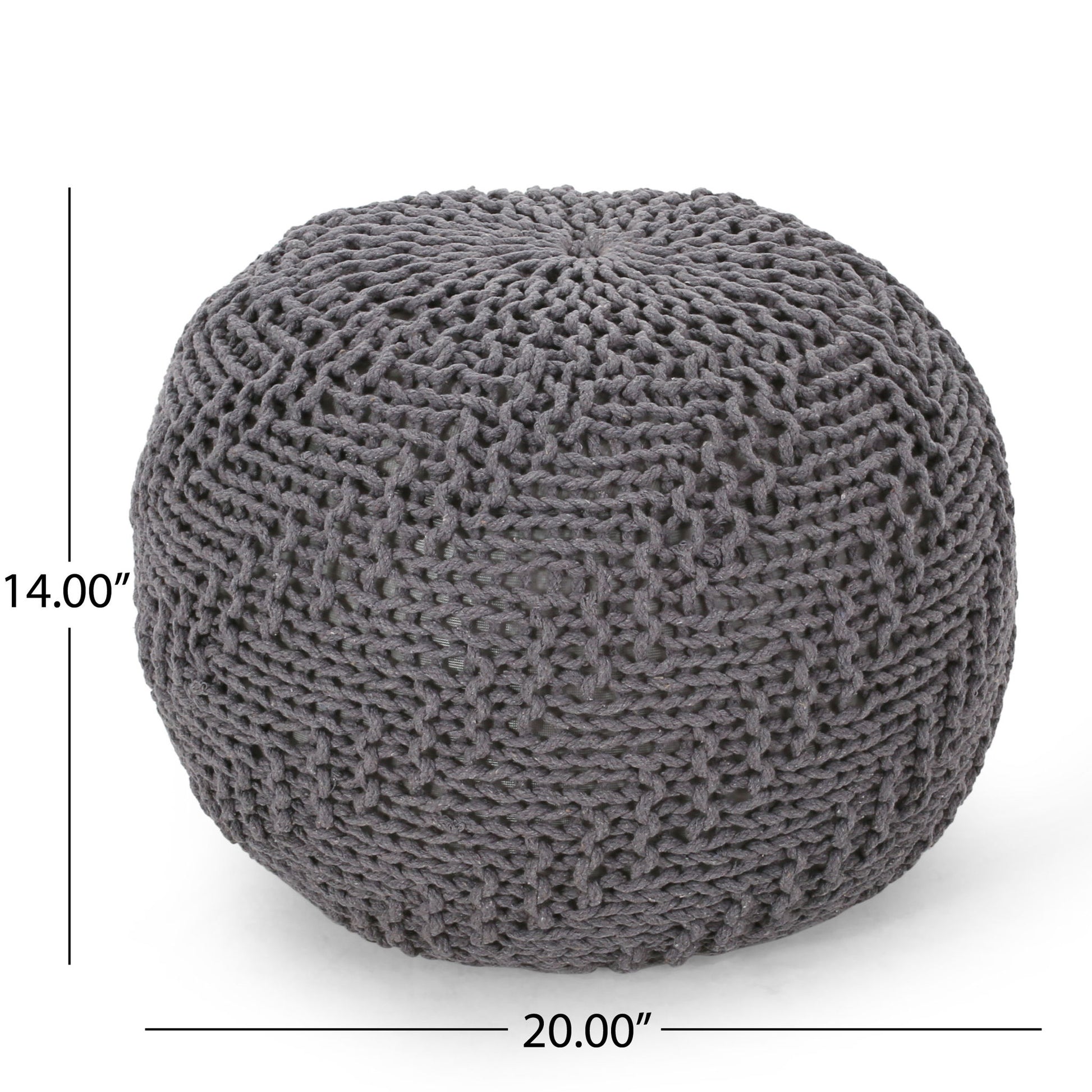 Hazel - Modern Knitted Cotton Yarn Round Pouf With Eco Friendly Pet Fibers - Dark Gray
