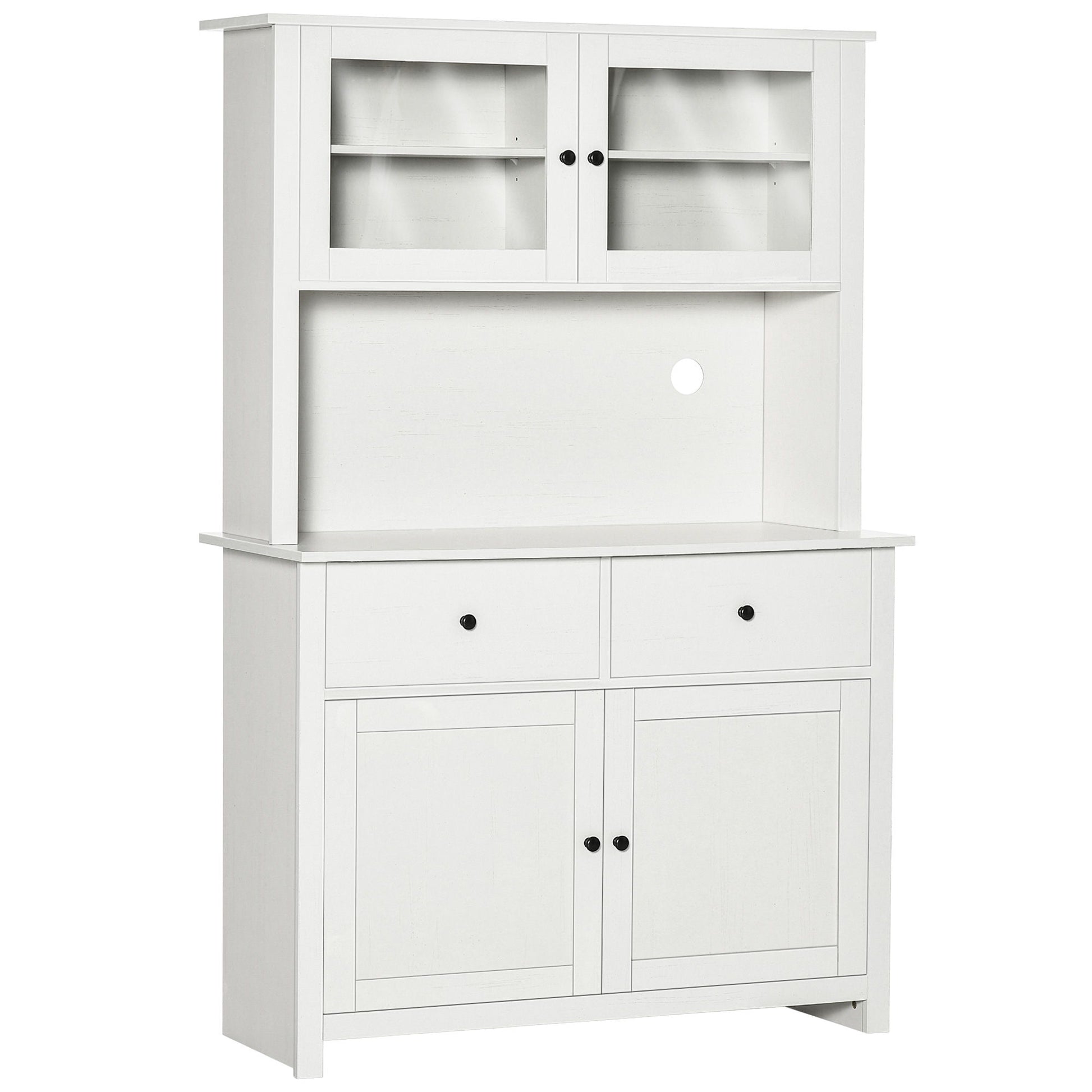 Homcom - 63.5" Kitchen Buffet With Hutch, Pantry Storage Cabinet With 4 Shelves, Drawers, Framed Glass Doors, Open Microwave Countertop - Antique White