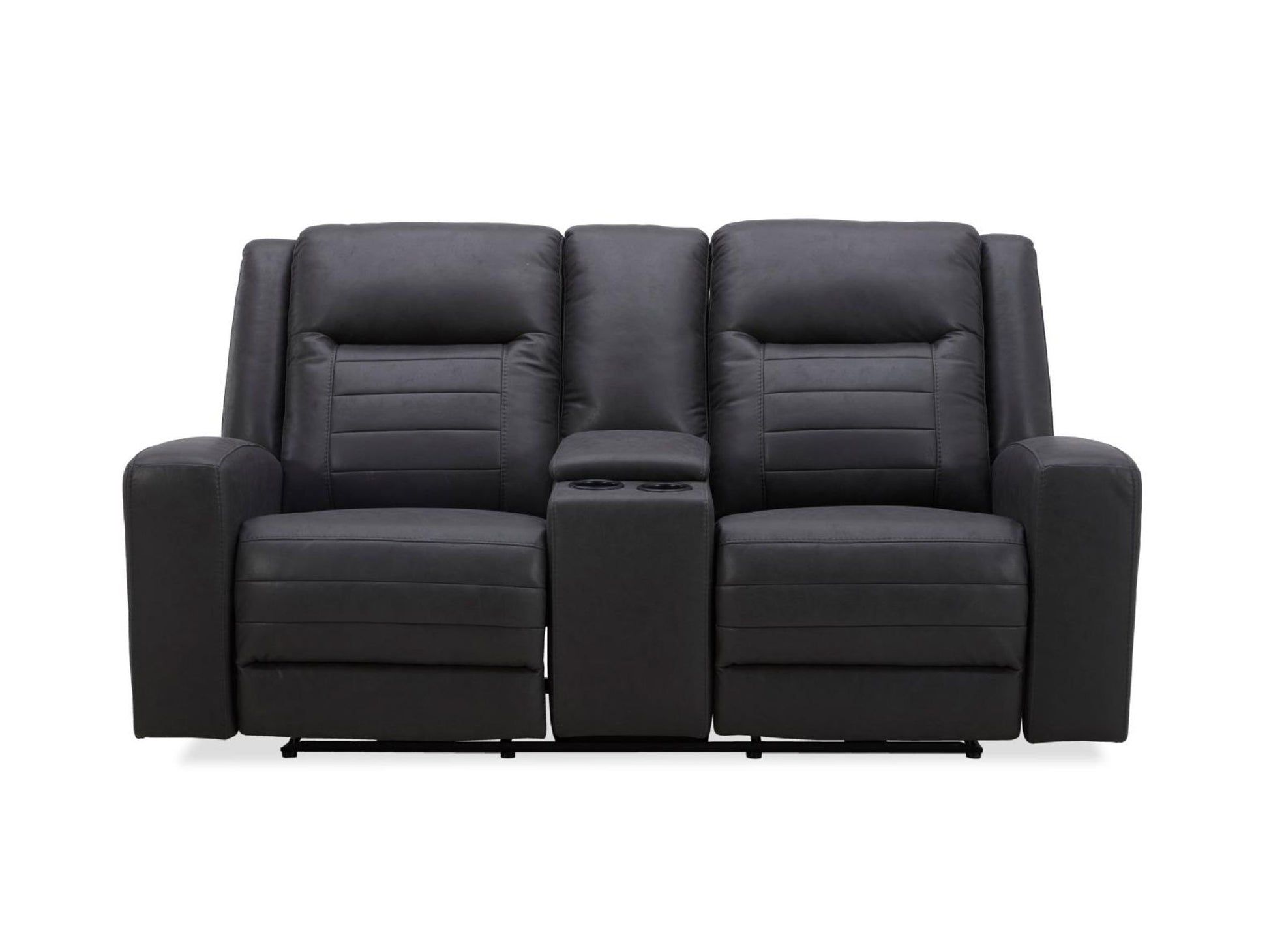 KUKA Power Dual Reclining Loveseat with Storage Console, 2 Cup Holders, Encapsuled Power Headrest, Deep Curve Pull in Back, Color: Charcoal