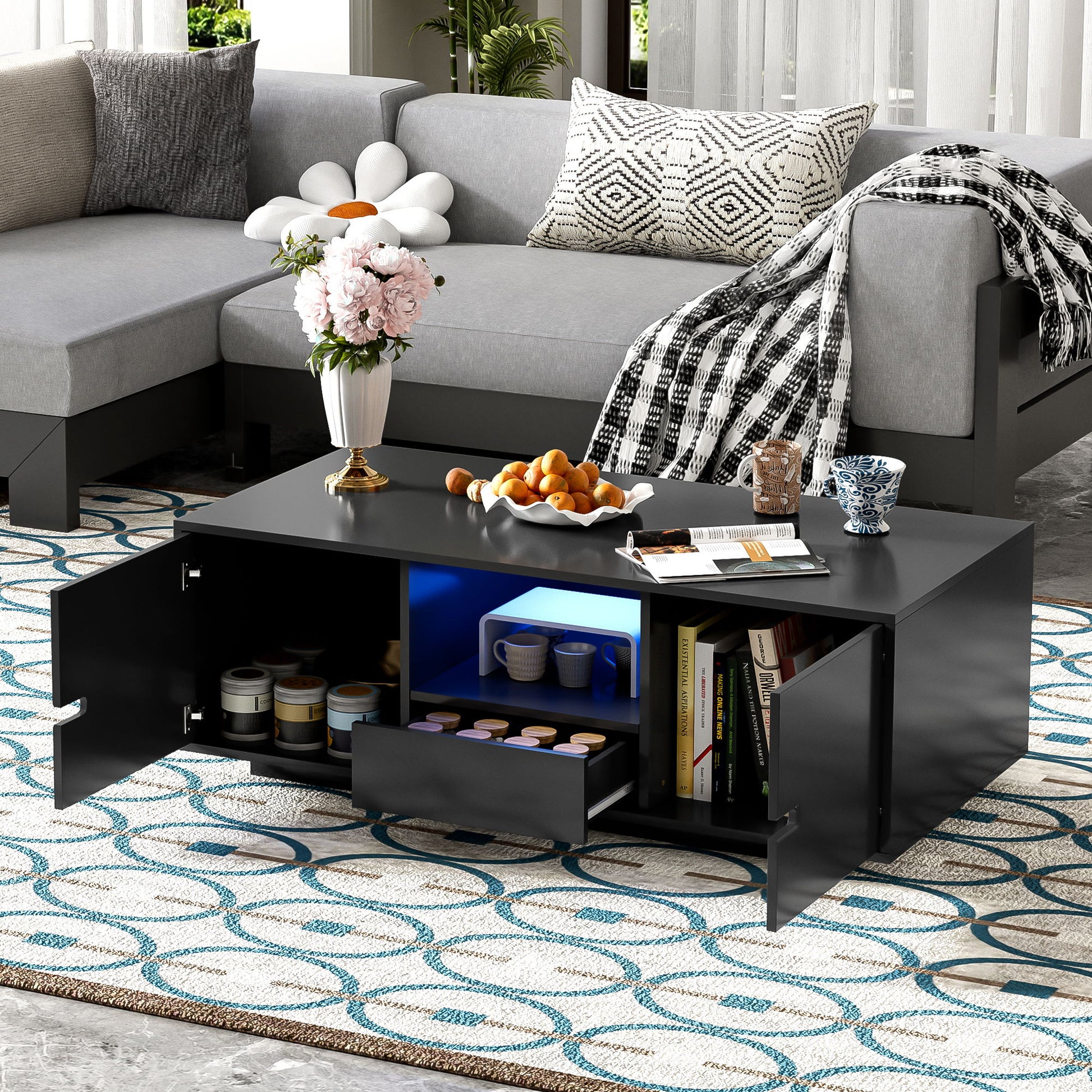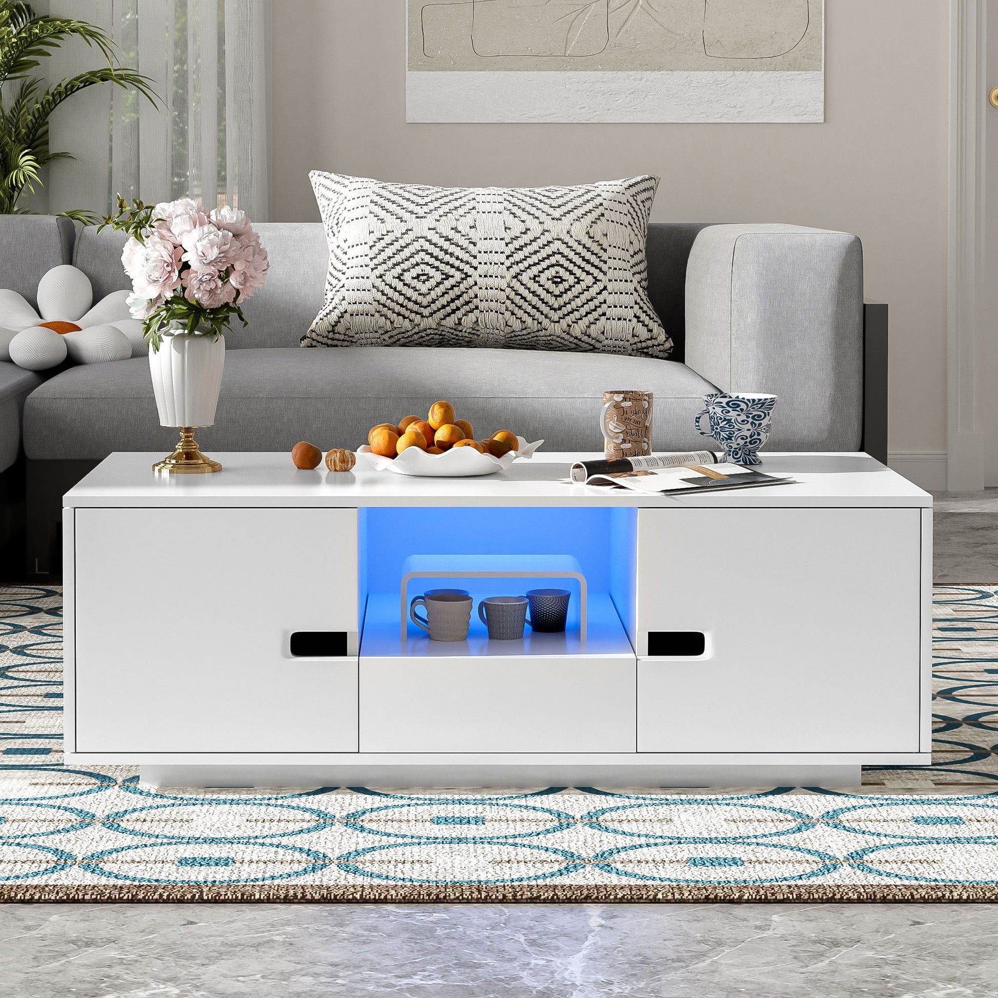 - 16 Colors LED Lights: Equipped with built-in LED lights, this coffee table allows you to create the perfect ambiancewhether you want a warm, cozy glow or a vibrant, dynamic atmosphere.