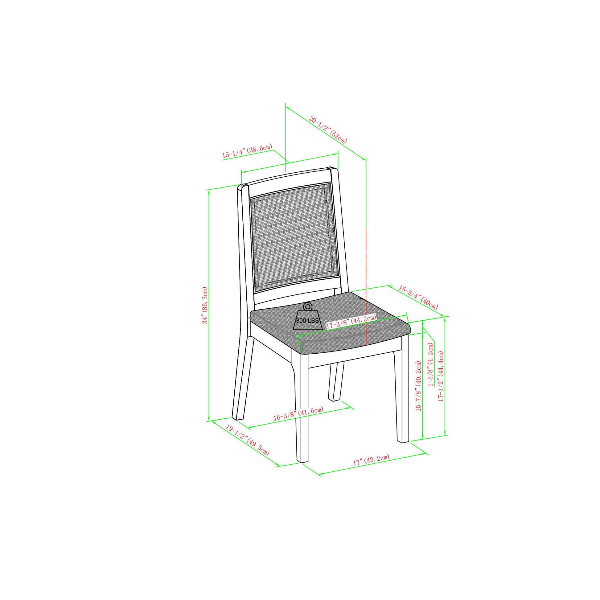 Modern Solid Wood Dining Chair With Rattan Inset Back (Set of 2)