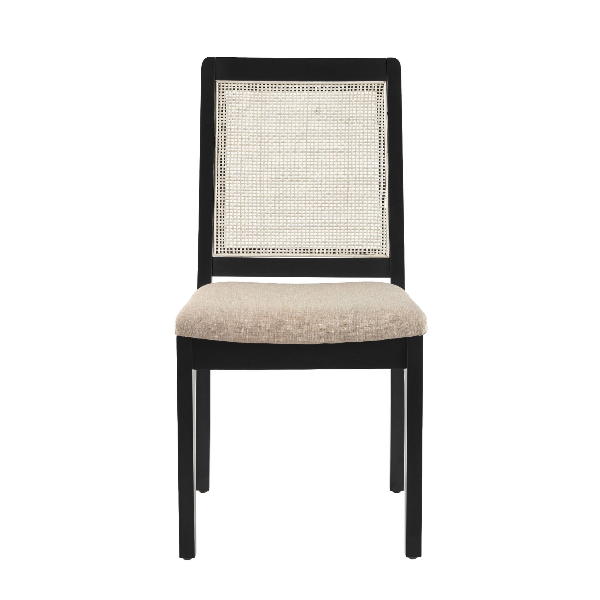 Modern Solid Wood Dining Chair With Rattan Inset Back (Set of 2) - Black
