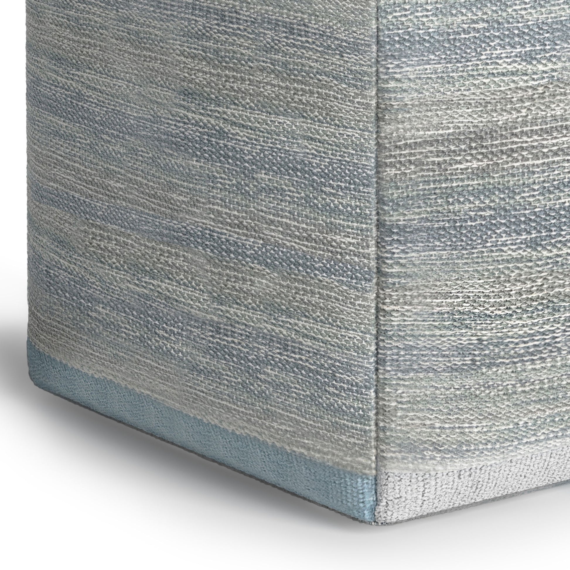 - Upholstered in a blue mélange pattern, hand woven cotton fabric