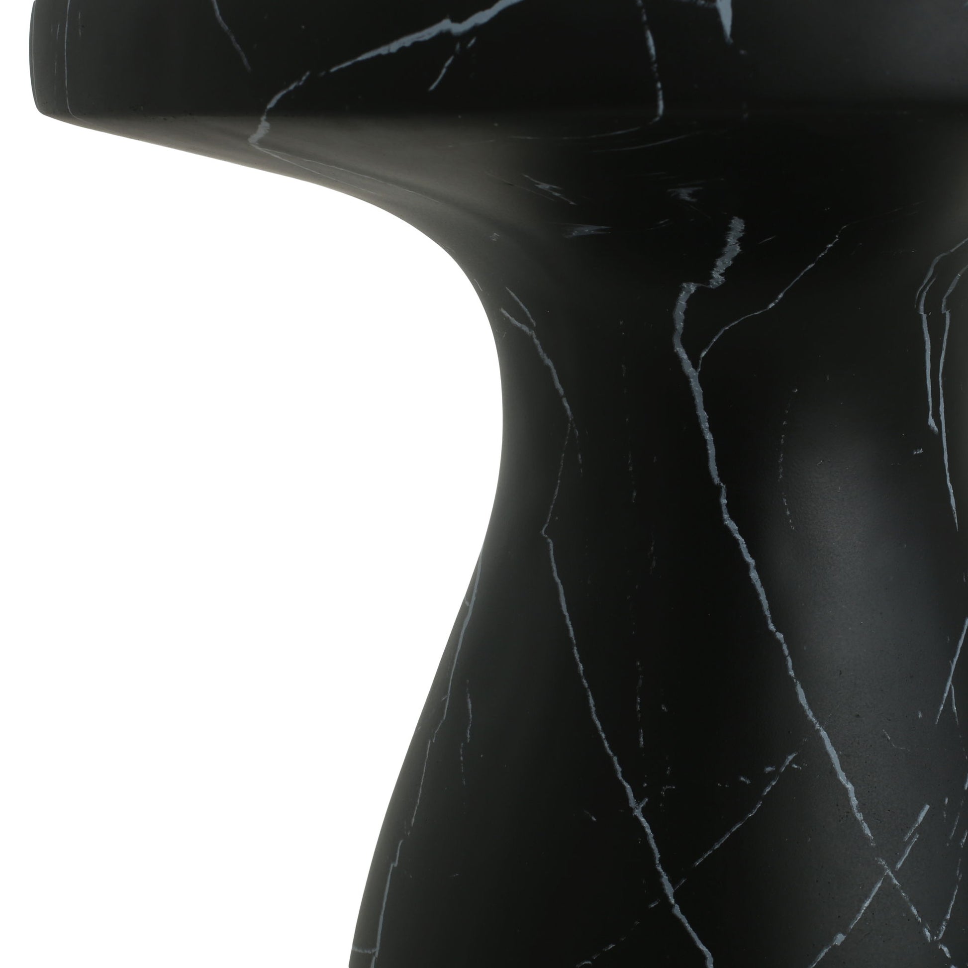 Outdoor Travertine Side Table, Light Weight Concrete End Table - Black Marble Effect