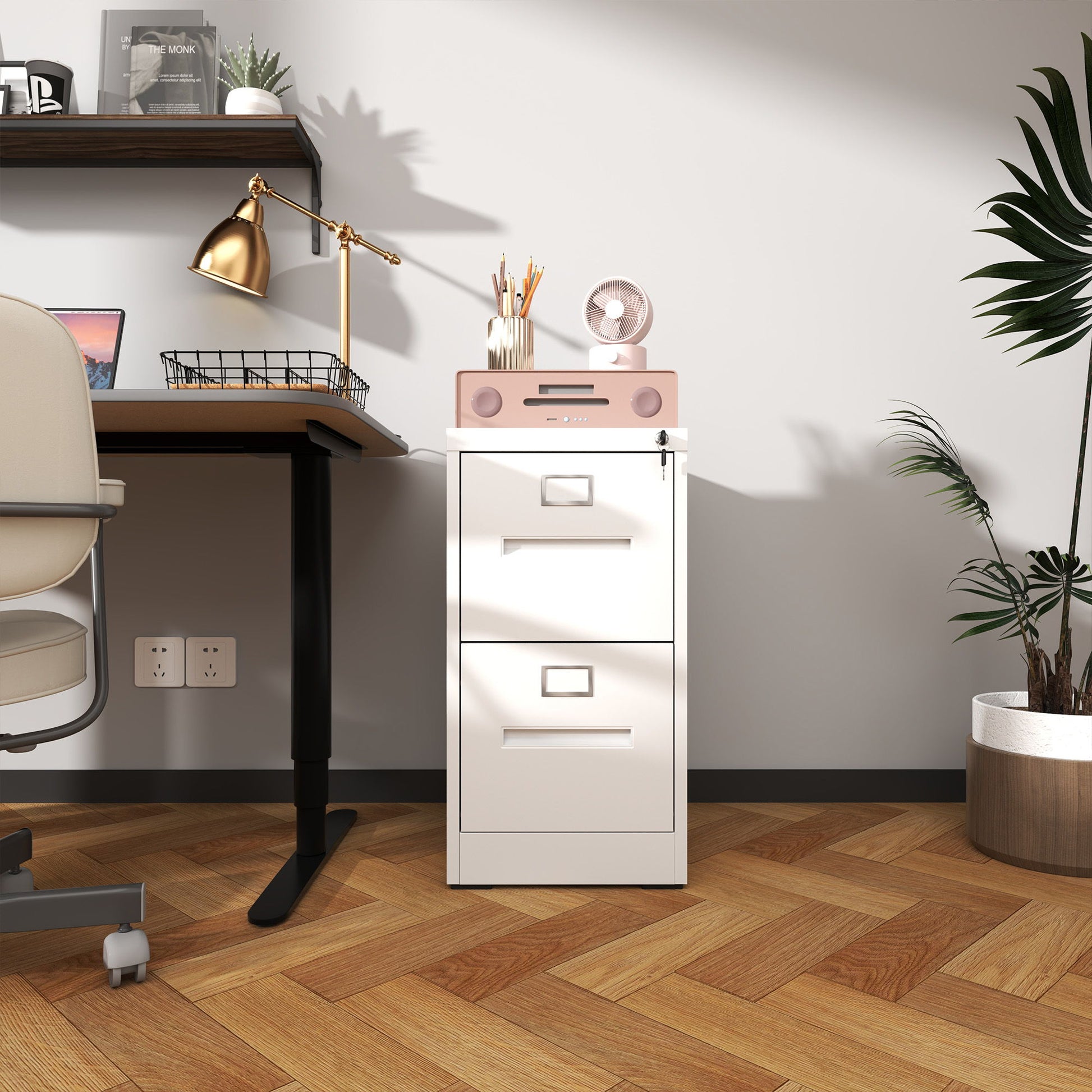 Premium 2 Drawer File Cabinet With Lock, Metal Vertical Design, A4 Legal / Letter Size, Steel, Compact Dimensions - White