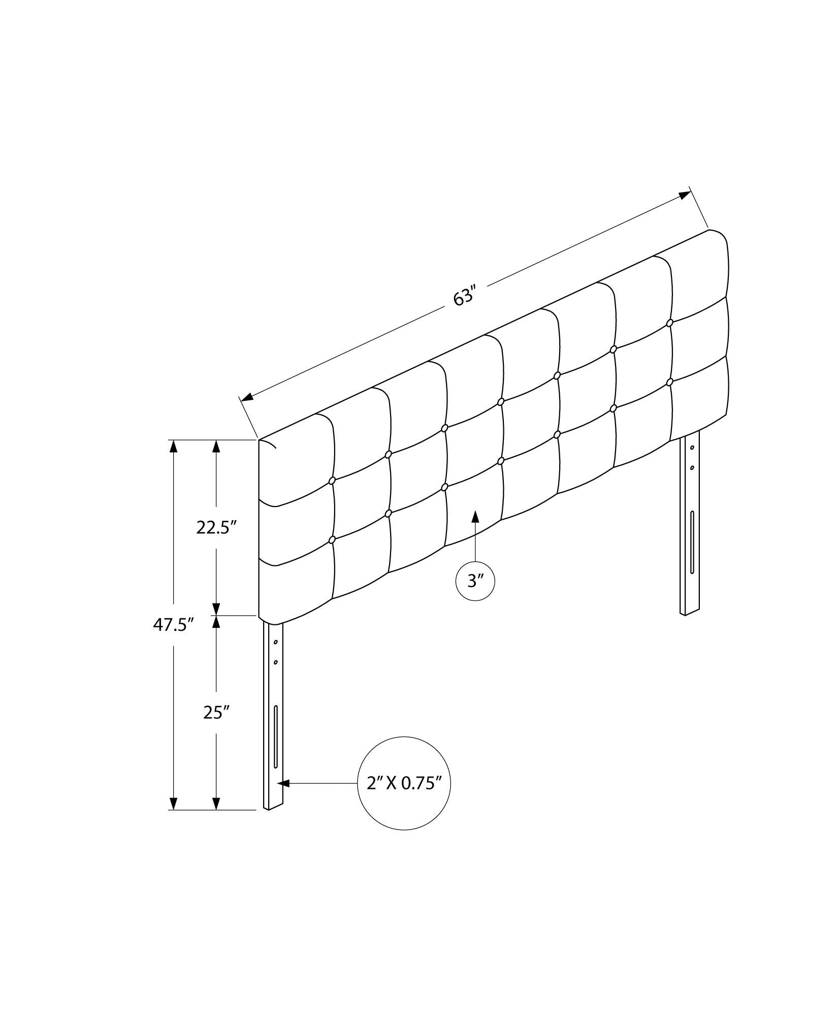 - Dimensions: The headboard measures 63 inches in length, 3 inches in width, and 47.5 inches in height, providing a substantial and stylish presence in the bedroom.