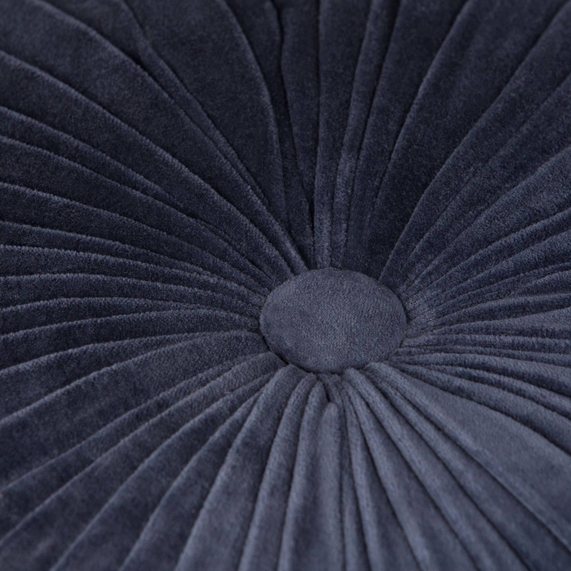 - Versatile round shape featuring a button tufted pleated top and unique tufted detail sides