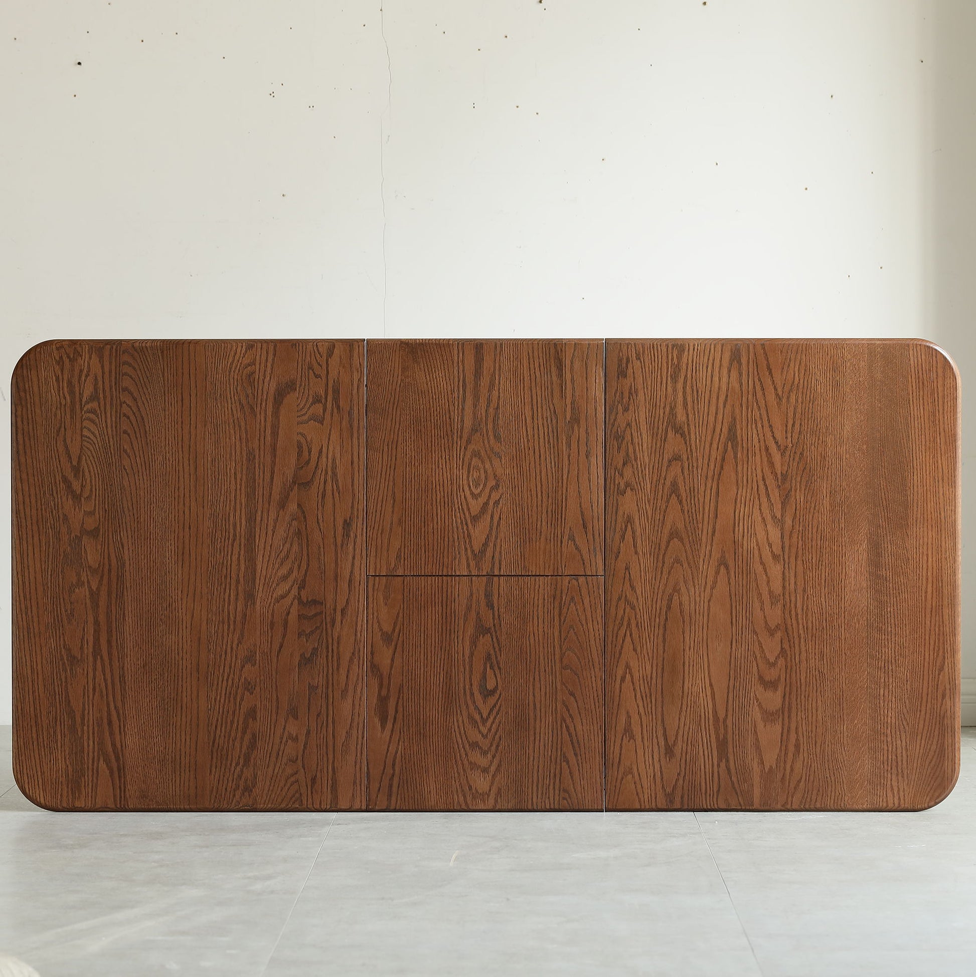 Round Corner Diagonal Leg Telescopic Table, For 6 - 8 People To Meet Dining Table - Walnut