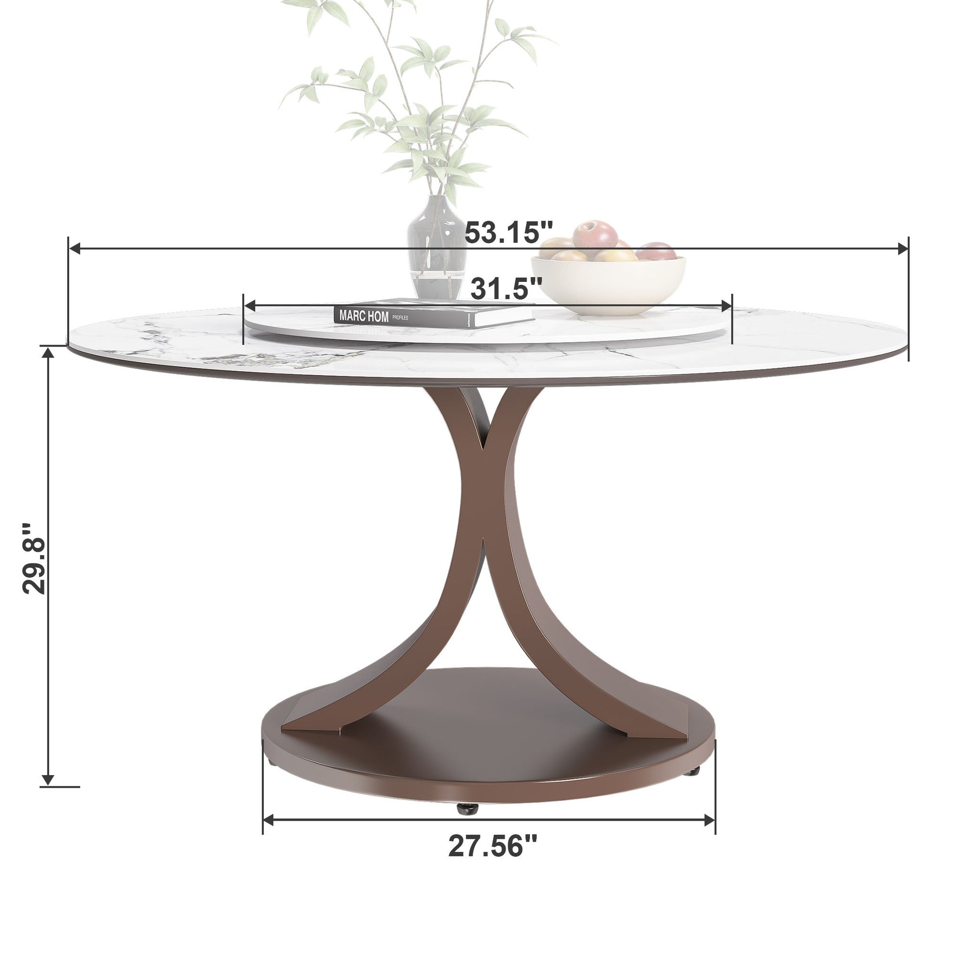 Round Dining Table With 360° Rotating Lazy Susan Scratch & Heat For Dining Room & Kitchen, Table Only - White
