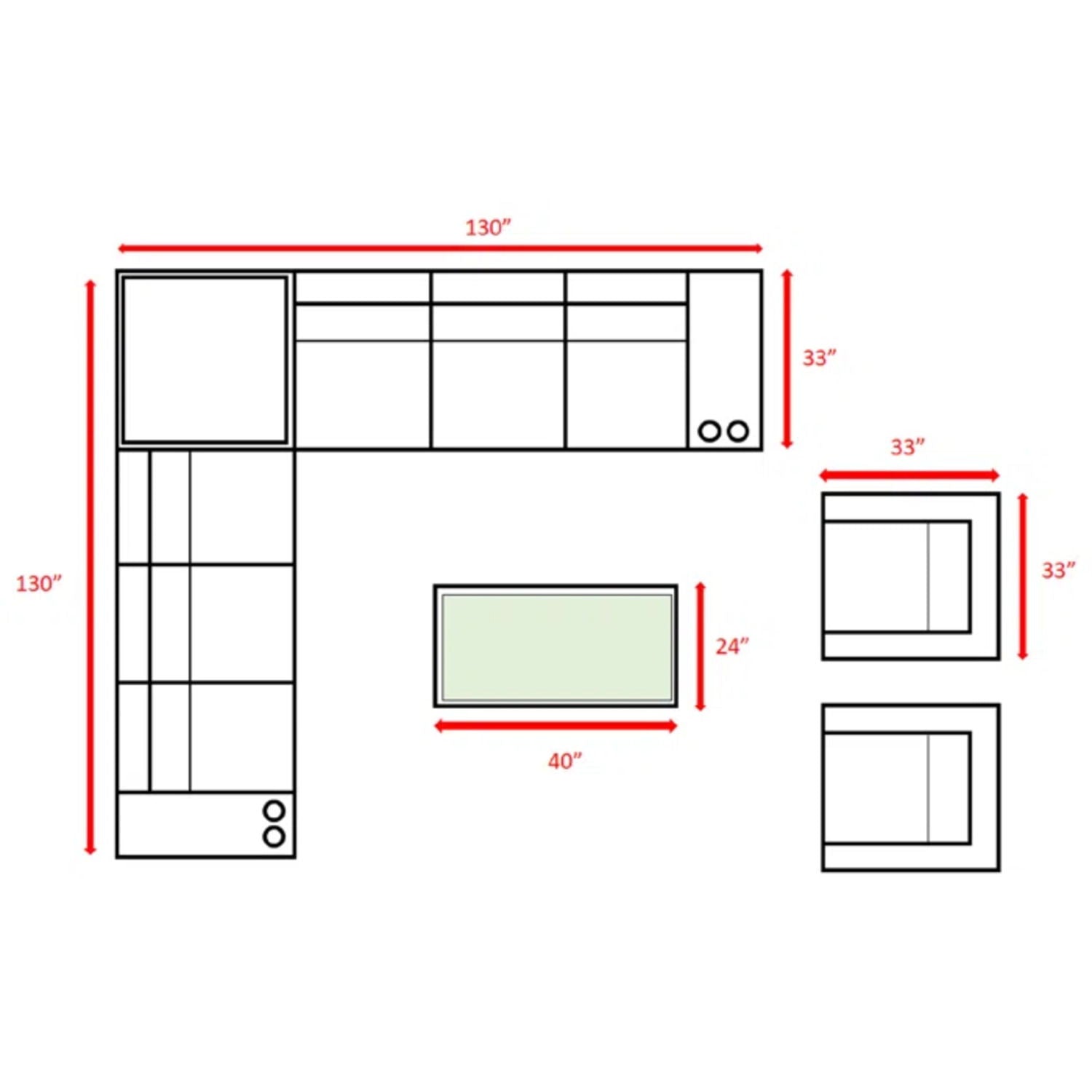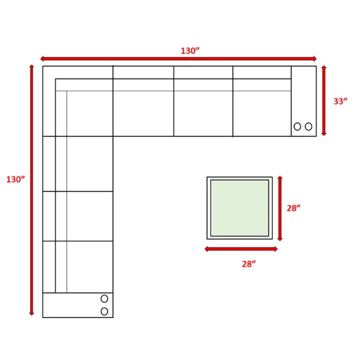 130.0"W x 130.0"D x 26.0"H - 261.0 lb
