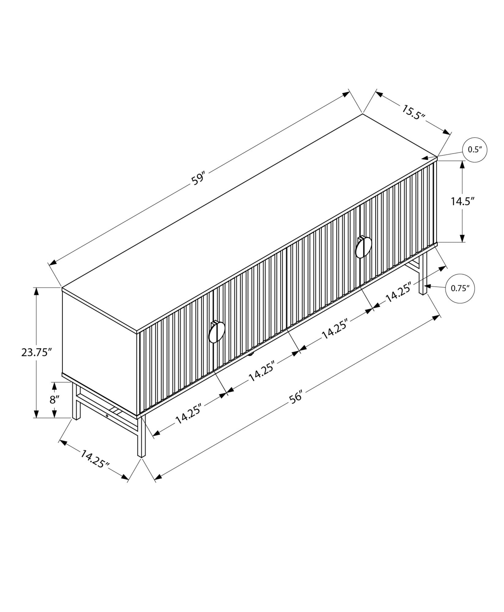 59.0"W x 15.5"D x 23.75"H - 73.0 lb